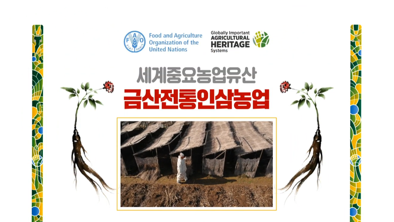 금산의 인삼재배법은 1,500년동안 지켜온 과학적인 전통재배법으로 그 우수함을 인정받아 세계중요농업유산 GIAHS에 2018년 7월 4일 등재됐으며, 앞서 국가중요농업유산 KIAHS에 2015년 3월 제 5호로 지정되었습니다.